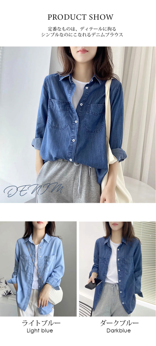 デニム シャツ レディース 長袖 デニムシャツ チュニック 長袖シャツ aqh2114