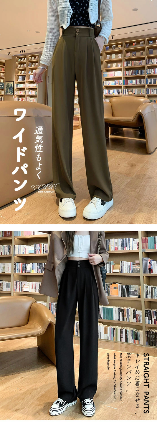テーラード パンツ レディース ハイウエスト ストレートレッグ ロングパンツ ruitongx059