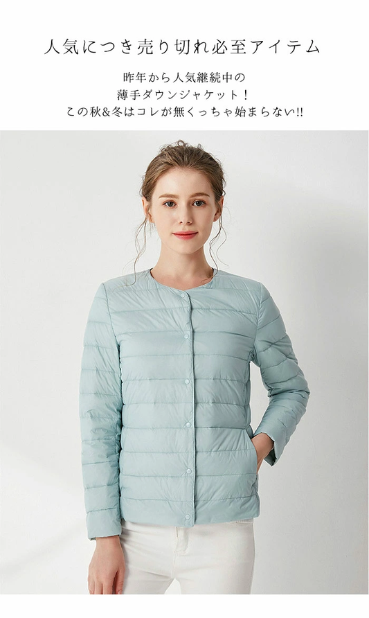 ダウンジャケット レディース ライトダウン ダウンコート 軽量 V首 丸首 インナーダウンジャケット 軽量ダウン 防寒着 長袖 jwlong010101