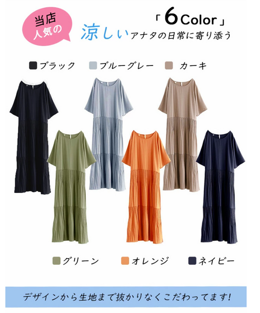 半袖 ワンピース レディース 夏 プリーツワンピース ロング ティアード マキシ 上品 きれいめ