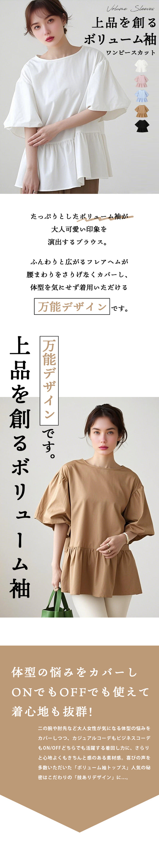 半袖 Tシャツ フリル トップス レディース Tシャツ フリルペプラム ボリューム袖 ティーシャツ shenshi50312