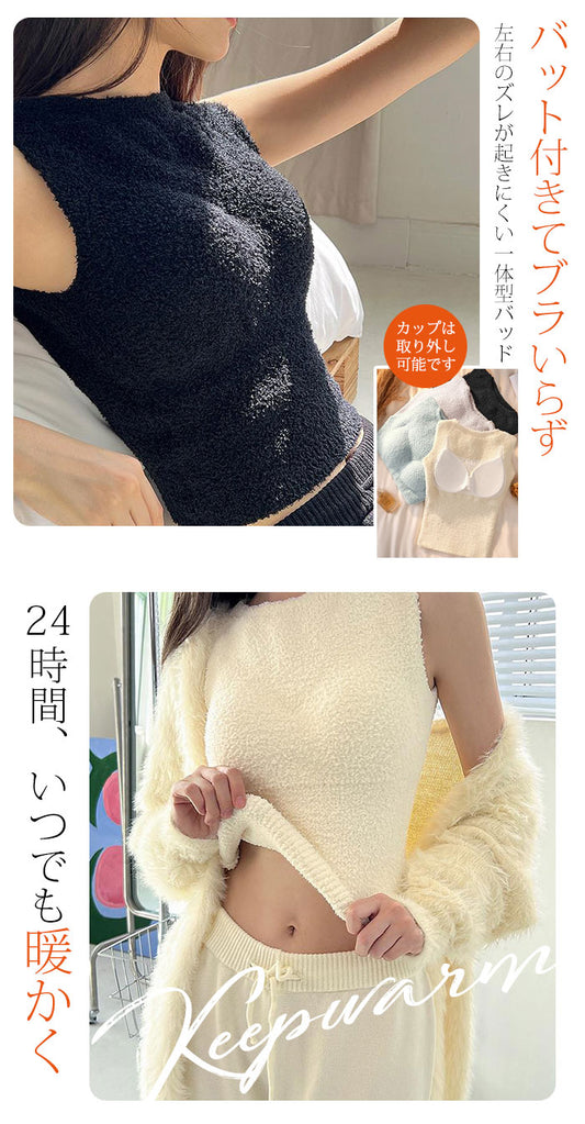 裏起毛 インナー カップ付き タンクトップ ブラトップ ボア フレンチスリーブ