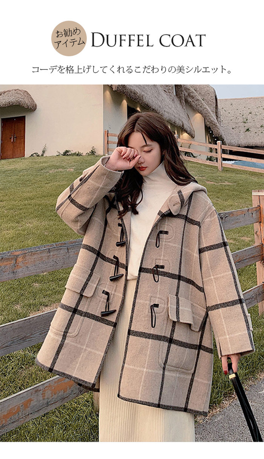 ウール20% ダッフルコート コートレディース ロングコート チェック柄 zhaiin6637508