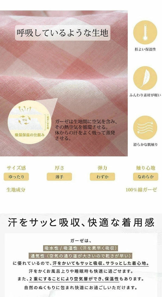 ガーゼ パジャマダブル ガーゼ ルームウェア 綿100% 前開き パジャマ 春