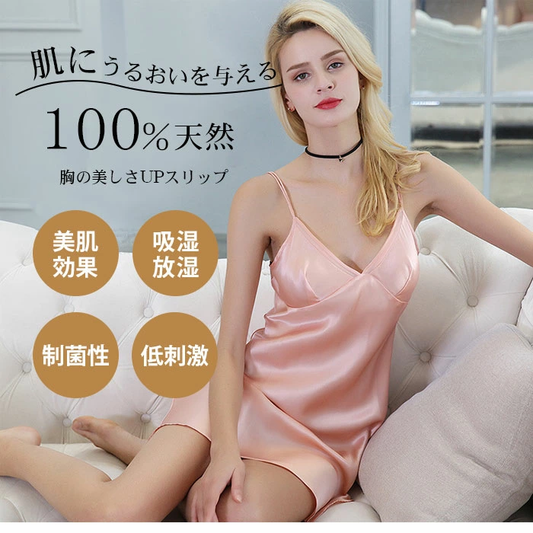 キャミソールワンピース シルク パジャマ 透け防止 レディース キャミソール xman33197