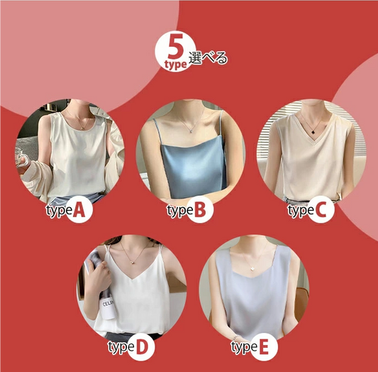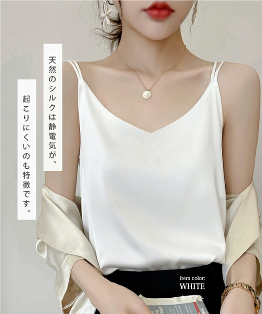 キャミソール シルク インナー タンクトップ サテン 光沢 ツルツル スクエア