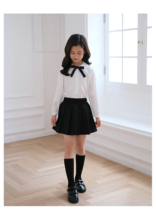 女の子 ブラウス フォーマル Yシャツ ホワイトシャツ リボン付き lbb613shirt