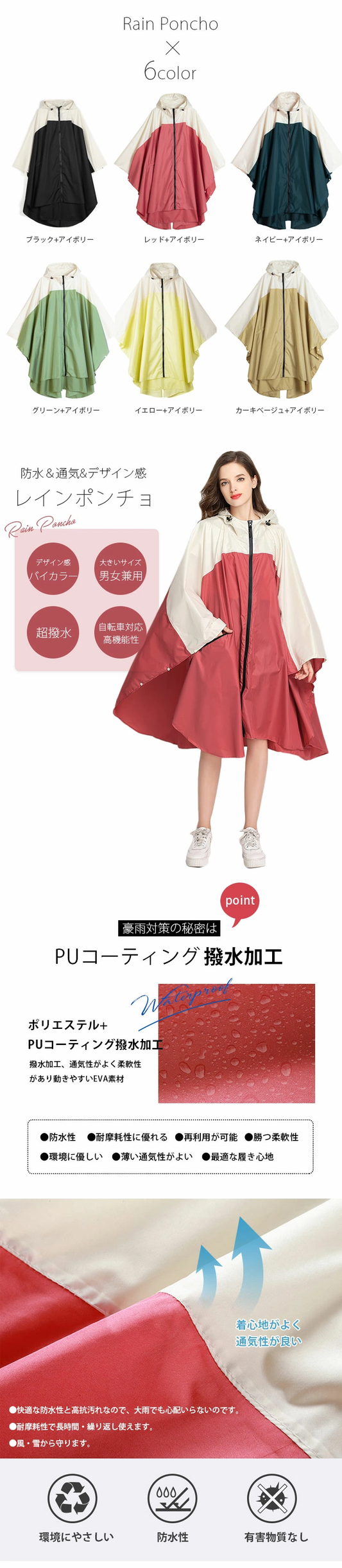 レインポンチョ レインコート 大きいサイズ 通学 レディース レインウエア 雨具 yirui01k31