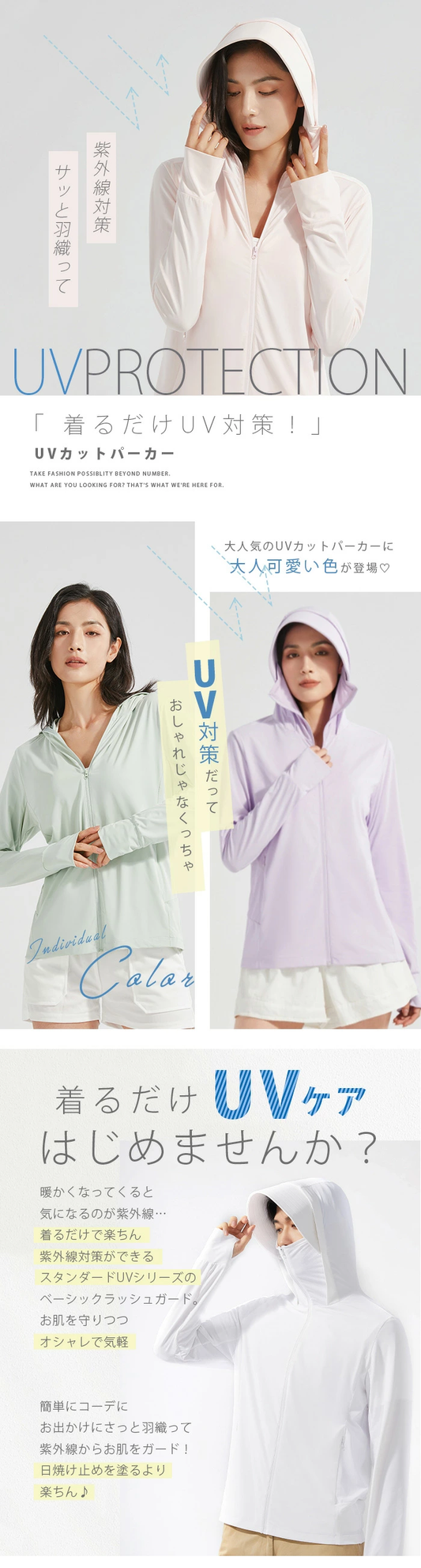 uvカット ラッシュパーカー パーカー レディース メンズ フード付 UVパーカー zhanm221
