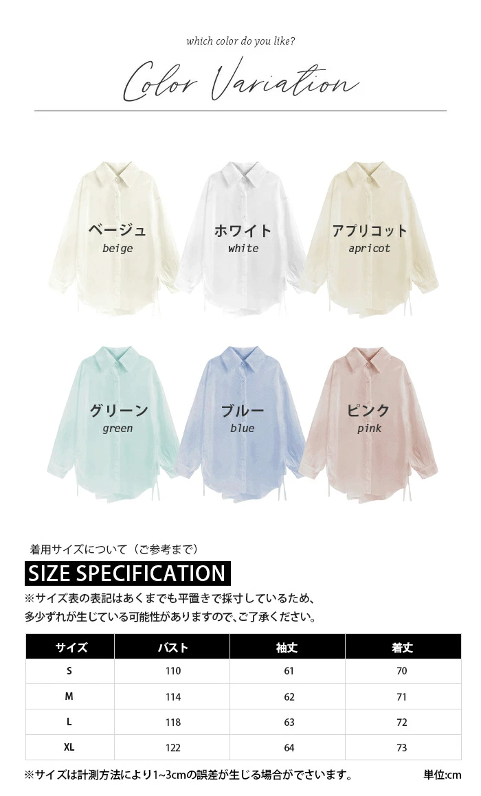 | サイズ展開 | 【S】【M】【L】【XL】 | ||||