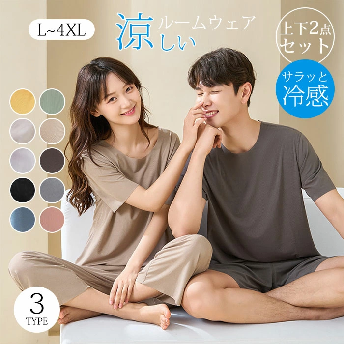 パジャマ ルームウェア 上下セット ペア レディース メンズ 冷感接触 75893nodc001