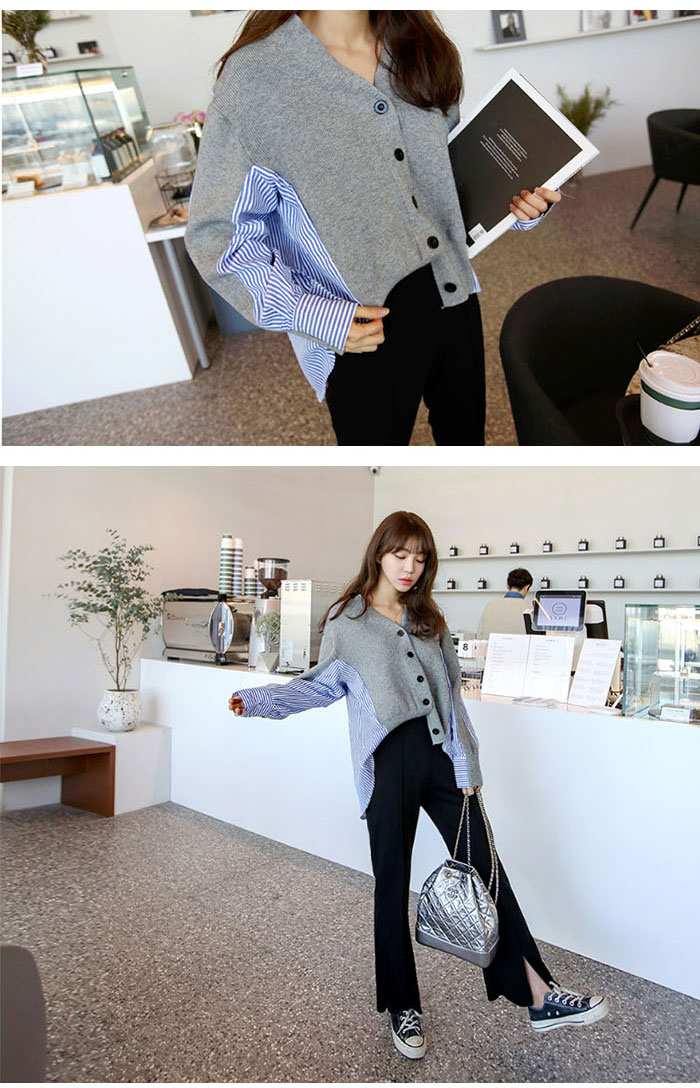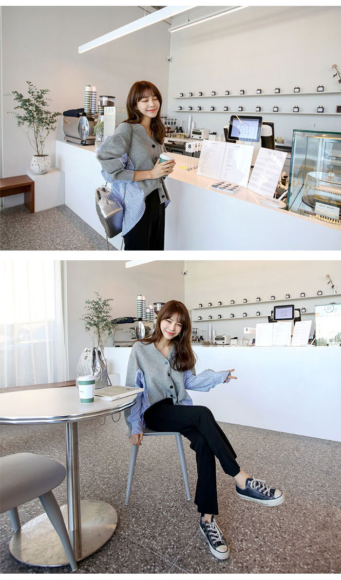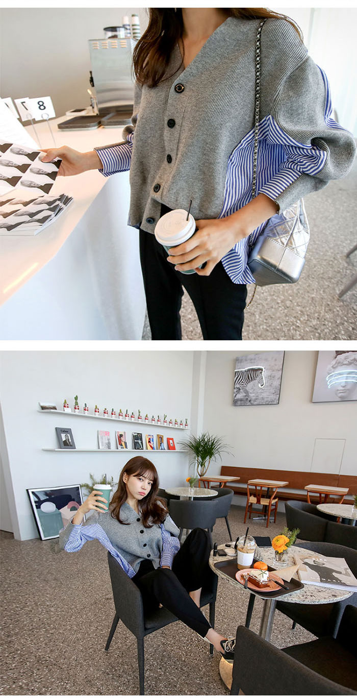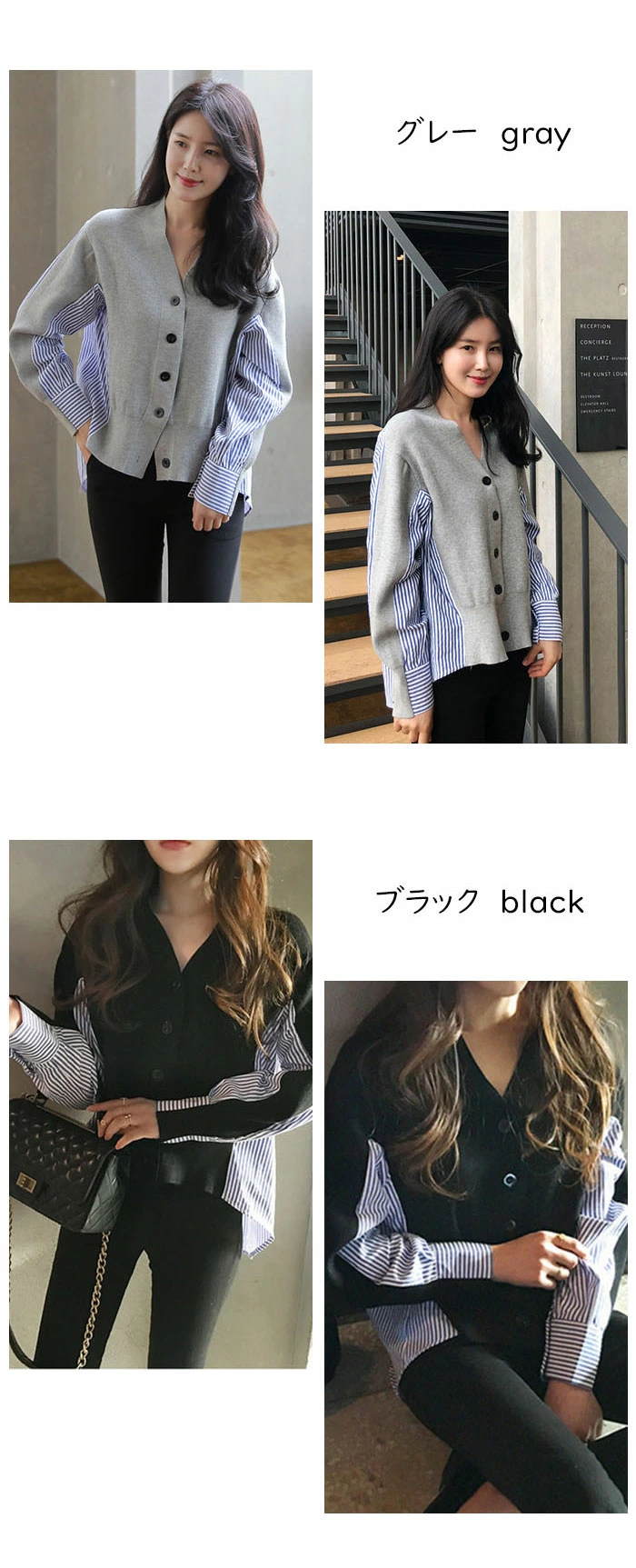 コメント ★縦ラインを強調して、スタイル良く魅せてくれるストライプ。異素材切り替えのコンビネーションカーディガンの登場