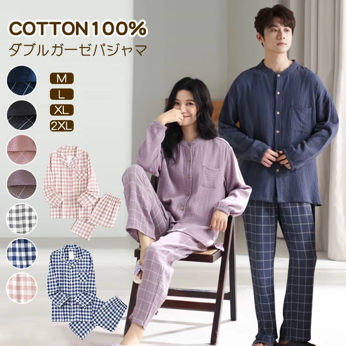 ダブルガーゼ パジャマ レディース 長袖 ガーゼ ルームウェア メンズ ガーゼ lhua44