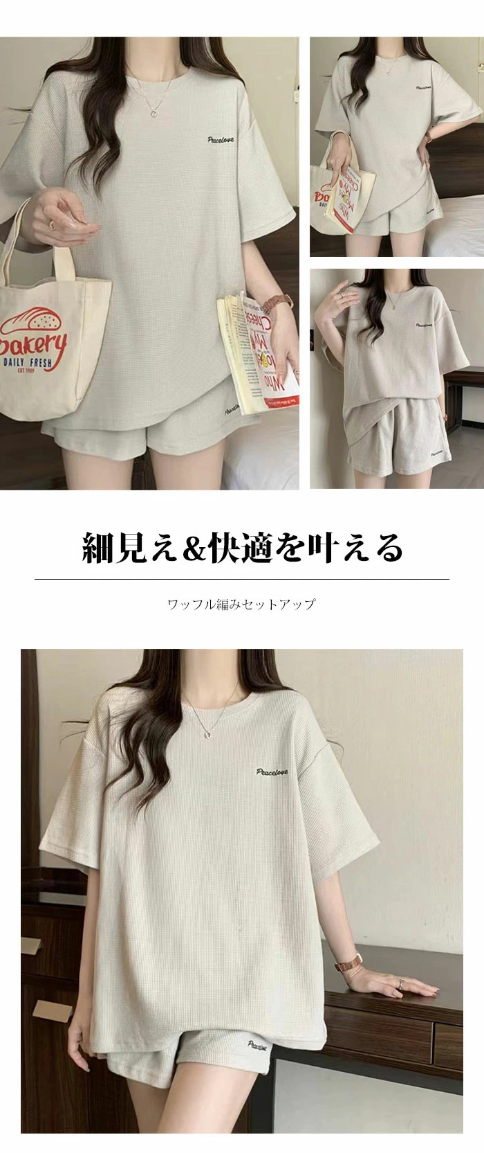 | コメント | 【優しい肌触りの綿混素材】肌触りのやわらかな素材でとっても快適な着心地です。通気性に優れた素材で、吸汗、速乾にも優れており、長めの袖丈で二の腕もカバーできるのも嬉しいポイントです。肌にさらりと触れる爽やかな素材感で夏にぴったりです。 ?【SNSでも話題ルームウェア】お洒落さんに大人気夏使えて、可愛いくて快適なルームウェア。一枚は持っていたい大人可愛い優れものアイテムです。オーバーサイズのトップスが着るだけでこなれ感をアップしてくれます。ゆったりで太ももにスキマができるようにワイドシルエットで仕上げました。 ?【ゆったりシルエット】ファッション性と快適性の両軸を捉えたリラックス感満載のデザイン。着脱が簡単、薄手のスウェット生地で冷房対策にもOK!細見え効果が計算されたデザインのショートパンツがセットになったアイテムです。体のラインを拾わないゆったりとしたシルエットなのでリラックスして着れます! ?【適用場所】毎日着るパジャマ・部屋着としても、ちょっとそこまでの外出や軽い運動時のワンマイルウェアとしてはもちろん、コンビニ、買い物、お泊まり、温泉や、急な宅配便にも対応!色違いでおそろいにしたりプレゼントにもオススメです。誕生日プレゼント、母の日、クリスマス、結婚祝い 出産祝い、出張、入院、旅行等、様々な場面で贈り物としてご利用ください。 |