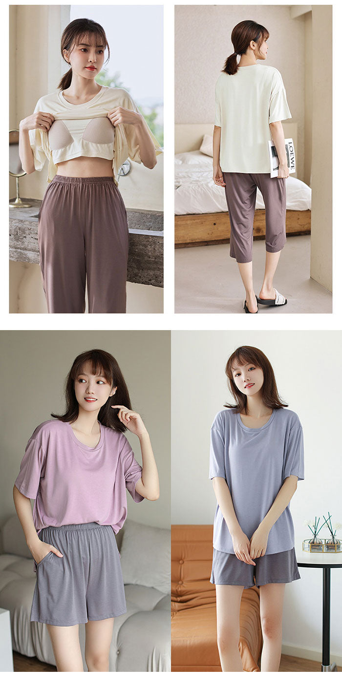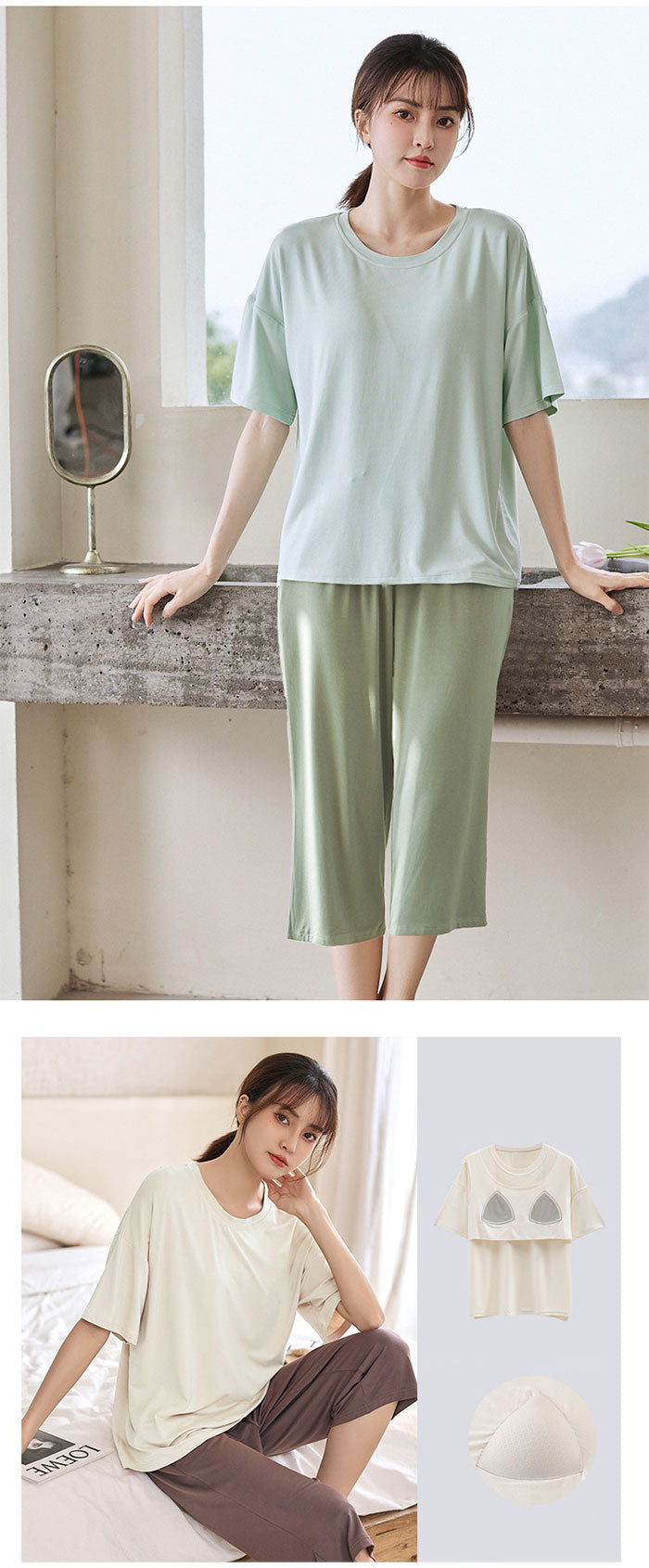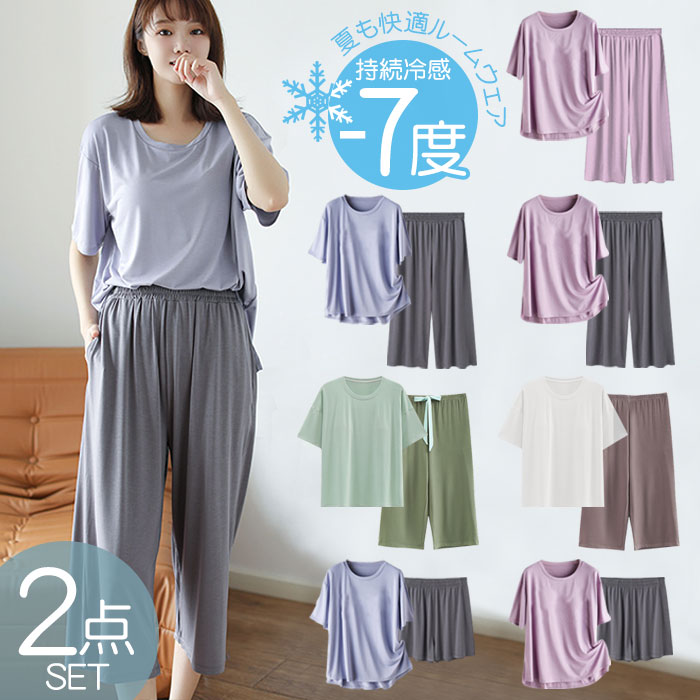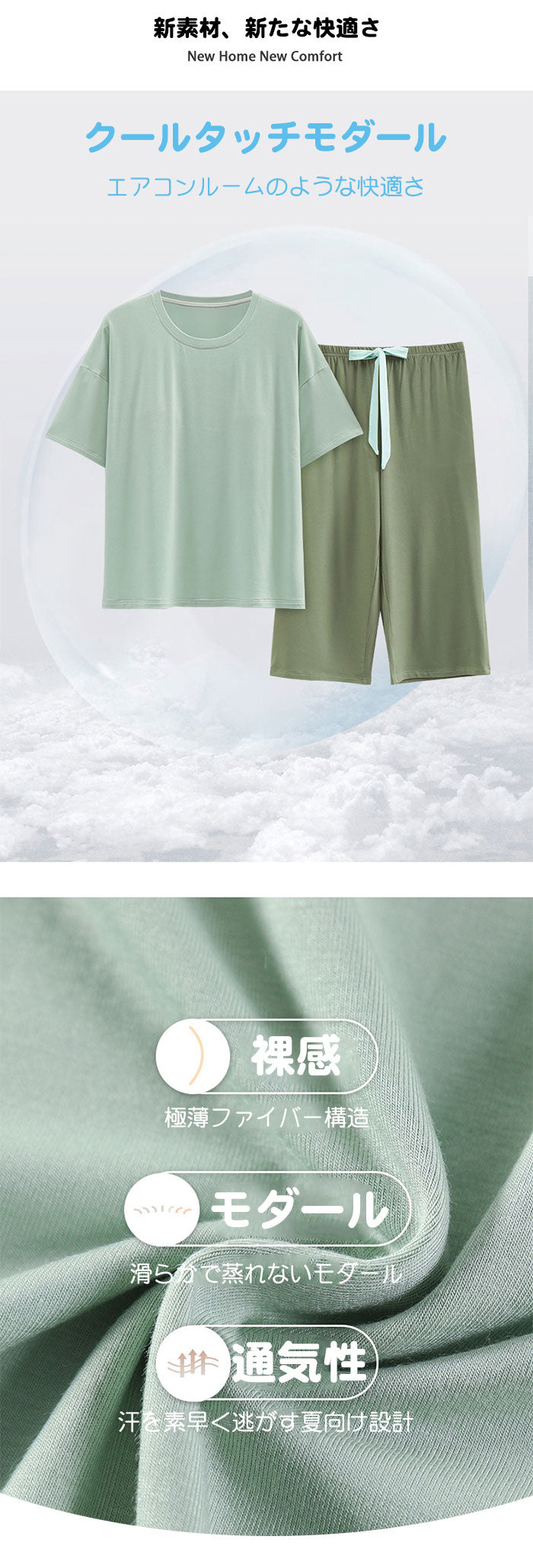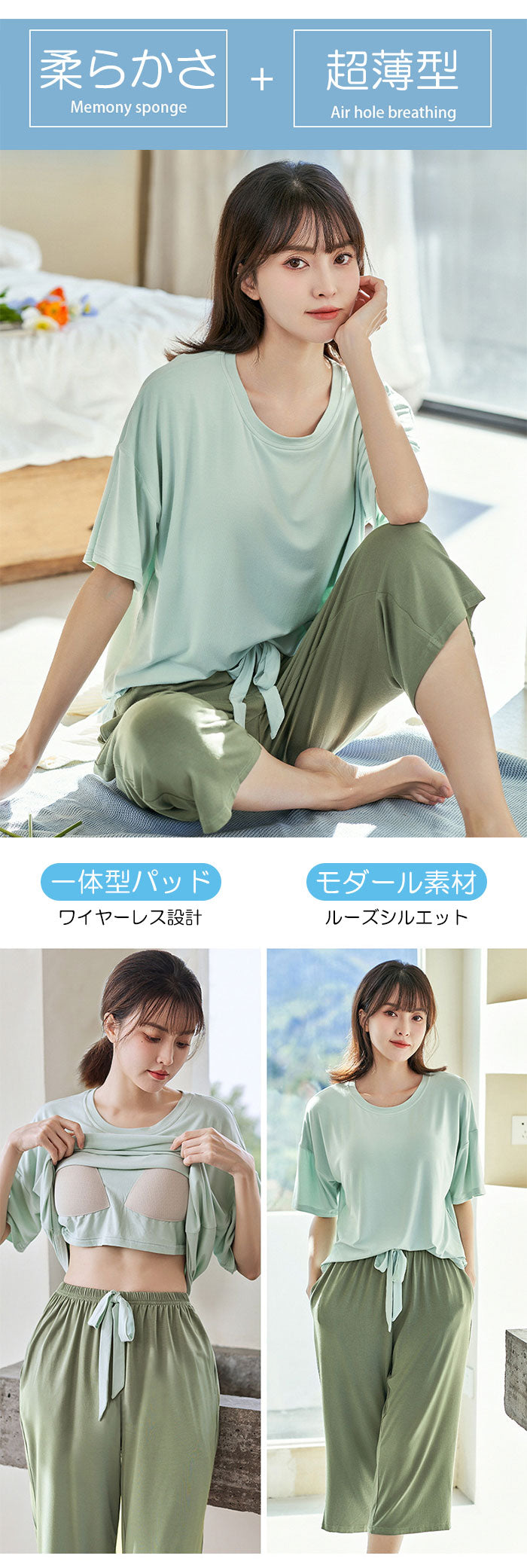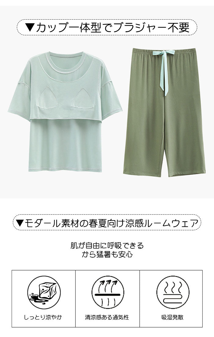 ルームウェア レディース 夏 カップ付き ルームウェア 冷感 パジャマ 上下セット 部屋着 夏 冷感 パジャマ 半袖 敏感肌可 -7度 薄い軽い 下着 涼しい 薄手 ゆったり ナイトウェア モダール 寝間着 シンプル 三/七分丈 可愛い 疲労回復