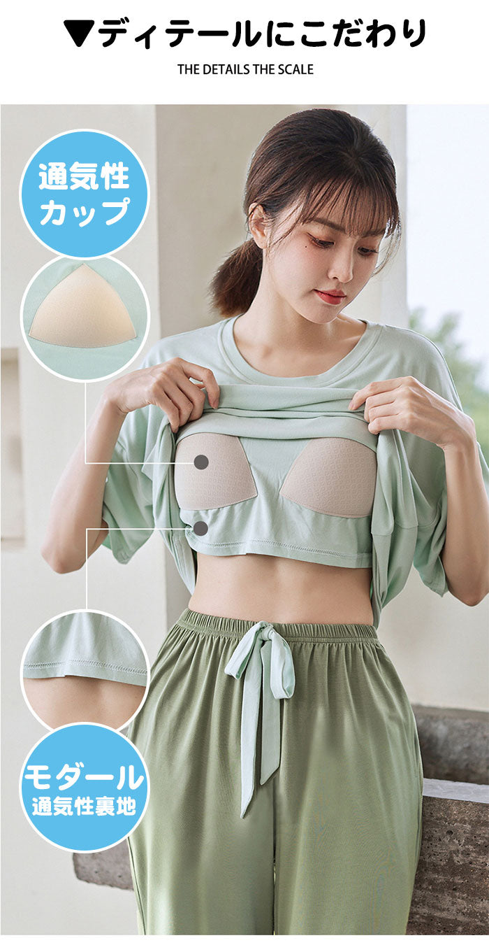 ルームウェア レディース 夏 カップ付き ルームウェア 冷感 パジャマ 上下セット byq837