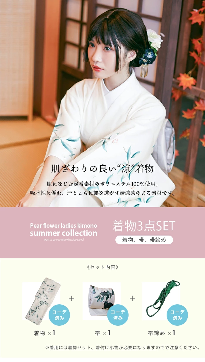| 内容 | レディース着物3点セット 着物、帯、帯締め、 |